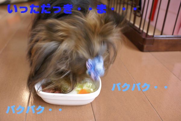 』の合図で・・・すごい勢いで食べるので写真も全部ブレブレ