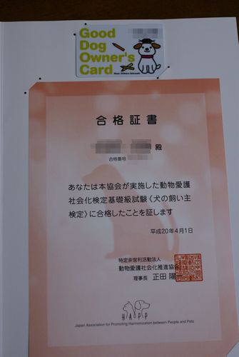 『犬の飼い主検定』の合格証&カード(?)